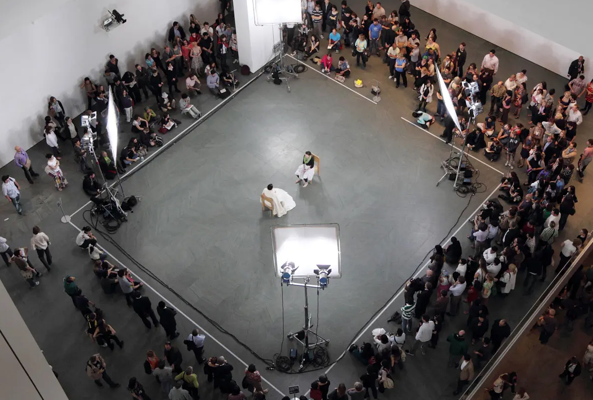 Performance view of Artist is Present, 2010, Museum of Modern Art, NY, Photo by Marco Anelli, Courtesy of Marina Abramovic Archives